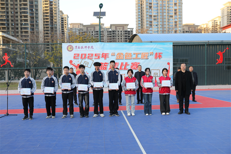 11月27日下午,渭南技師學(xué)院2025年“金色工匠杯”籃球賽閉幕式在學(xué)院籃球場舉行。黨委副書記、院長張君升,黨委委員、總會計師邢毅出席閉幕式。閉幕式由學(xué)工黨支部書記、學(xué)生處處長李峰主持。