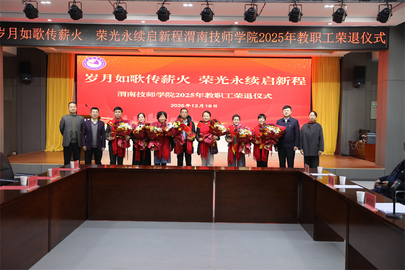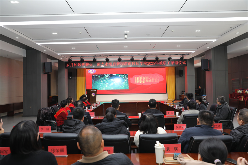 溫情馥郁,薪火賡傳。2025年12月18日下午,渭南技師學院產(chǎn)教融合樓二樓會議室內(nèi)暖意融融,氣氛莊重而溫馨。學院以“歲月如歌傳薪火 榮光永續(xù)啟新程”為主題,隆重舉行2025年度教職工榮退儀式,向同勇軍等12位為學院發(fā)展傾盡心血、奉獻韶華的老教師、老同志致以崇高敬意與誠摯祝福。學院黨委書記曲志勇,黨委副書記、院長張君升,黨委委員、總會計師邢毅出席儀式,各黨支部書記、副科級以上干部、各教研組組長、近三年新進教師及全體榮退教職工齊聚一堂,共同見證這一溫情時刻。儀式由黨委委員、工會主席李瑞芳主持。