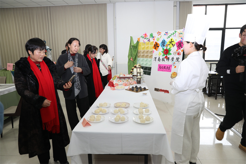 會后榮退教職工參觀中西面點實訓基地學生作品展示活動
